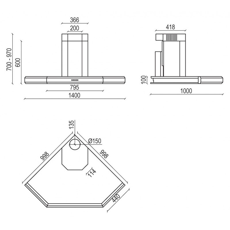 Falmec Cappa ad Angolo CEIA00.E0P1 CRII491F Elios Design 100 cm 800 m3 Inox Richiedi un preventivo personalizzato