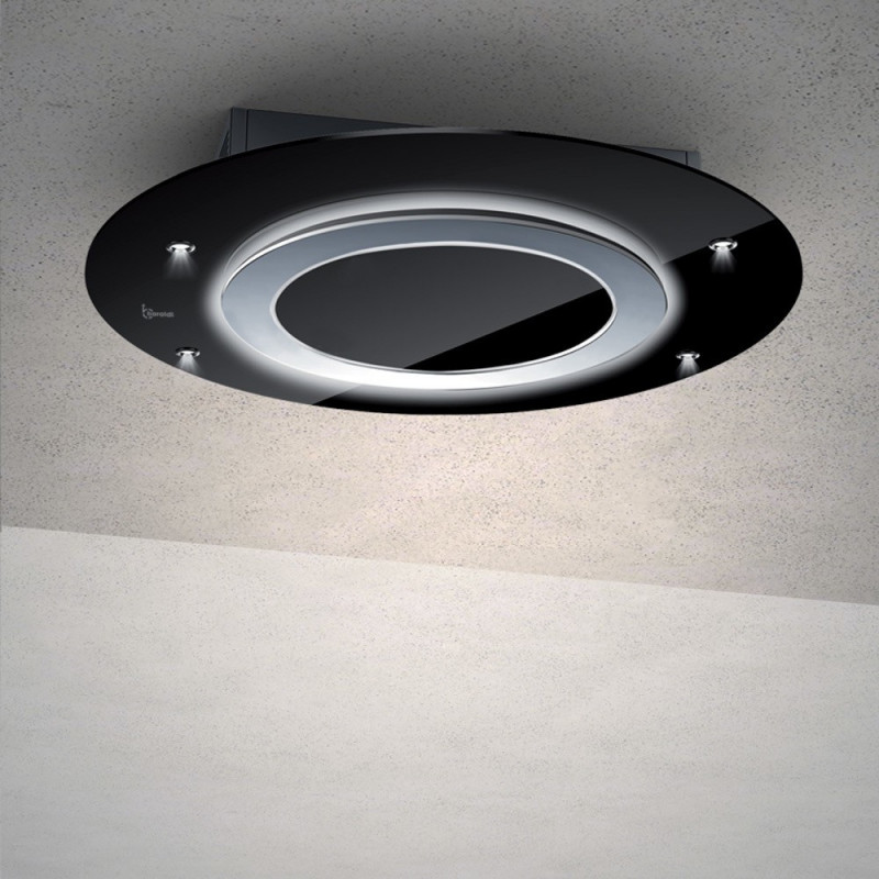 La cappa GEA FLAT di Baraldi si integra completamente nel soffitto ed è composta da un piano in metallo verniciato nero con un bordo a filo quasi impercettibile. Un comodo telecomando consente il pieno controllo delle funzioni.