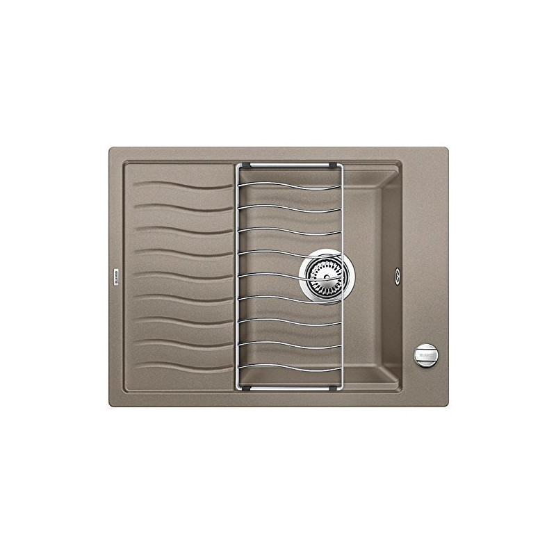 Il Lavello Blanco semifilo/filotop Claron 400/400-IF finitura Acciaio Inox 18/10 è dotato di due vasche con piletta da 3½", sifone e tappo a cestello InFino®.