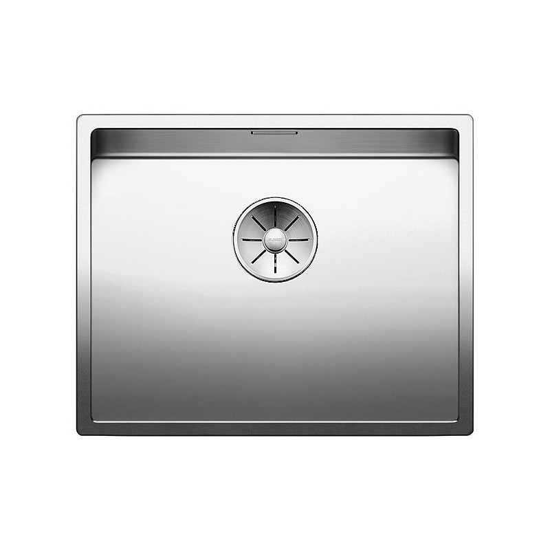 Il Lavello Blanco semifilo/filotop Zerox 550-IF finitura Acciaio Inox 18/10 è dotato di una vasca con piletta da 3½", sifone e tappo a cestello InFino®.