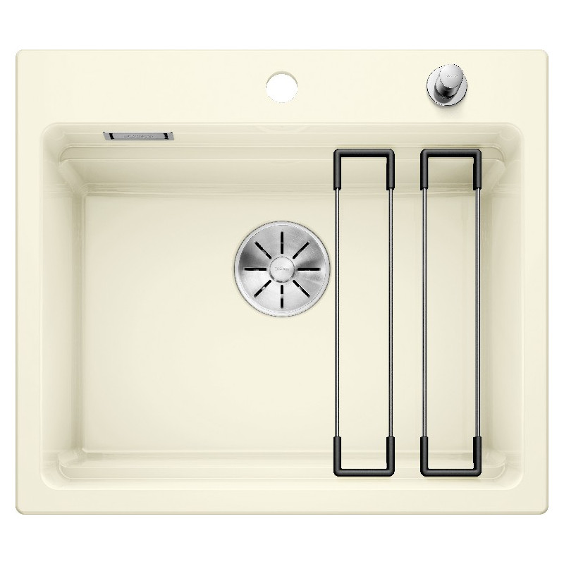 Il Lavello Blanco Dalago 5 in Silgranit® PuraDur® finitura bianco è dotato di una vasca con piletta da 3½", tappo a cestello, saltarello e sifone.