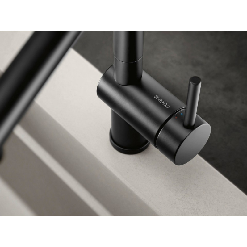 Il Miscelatore da cucina Blanco Mida-S finitura nero della linea Modern è a canna alta, è dotato di doccetta estraibile ed ha un design essenziale per unottima praticità.