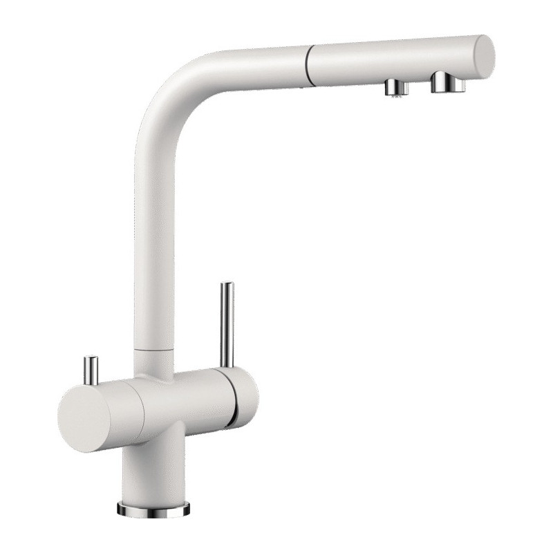 Il Miscelatore da cucina a tre vie Blanco Fontas-S II finitura antracite della linea Special è dotato di doccetta estraibile e comandi separati per lacqua della normale rete idrica e per lacqua proveniente dal vostro impianto di filtraggio.