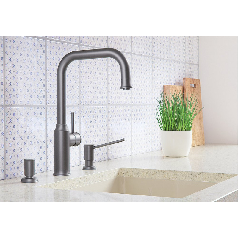 Il Miscelatore da cucina 1523120 Blanco Candor finitura Acciaio massiccio spazzolato della linea Modern è dotato di una canna alta per un riempimento agevole di vasi o pentole voluminosi e di rompigetto brevettato per una marcata riduzione dei depositi di calcare.