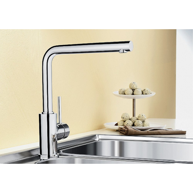 Il Miscelatore da cucina Blanco Carena finitura cromo della linea Modern è a canna alta per agevolare il riempimento di vasi e pentole e ha una leva comandi ergonomica, in posizione rialzata.